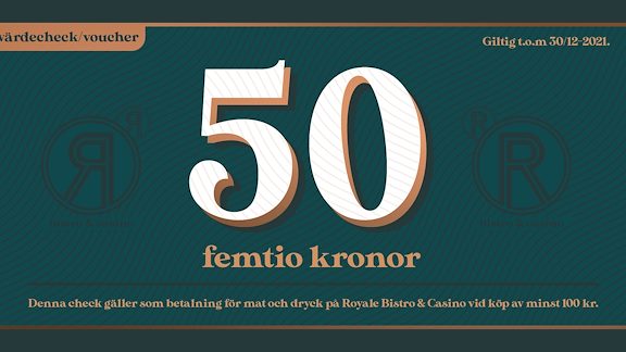 I samarbete med Royale Bistro&Casino erbjuder vi ett fantastiskt casinopaket där du njuter av god mat och dryck i en spännande miljö! I priset ingår en trerättersmeny, en övernattning samt frukost.